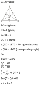 Multiple Choice Questions on In a triangle PQR PX QY and RZ be altitudes intersecting at O If PO 6 cm PX 8 cm and QO 4 cm then wh........... for SSC CGL Exam Preparation