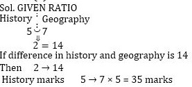 Priya's marks in History and Geography are in the ratio 5 : 7. If she got 14 marks more in Geography than in History, what are her History marks?