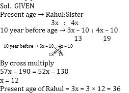 The ratio of present ages of Rahul and his sister is 3 4 Before 10 years the ratio of their ag...........