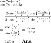 What is the value of [(cos 7A + cos 5A)÷(sin 7A – sin 5A)]?