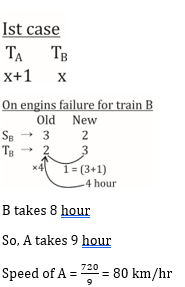 Train A takes 1 hour more than train B to travel a distance of 720 km. Due to engine trouble speed of train B falls by a third, so it takes 3 hours more than Train A to complete the same journey? What is the speed of Train A (in km/hr)?