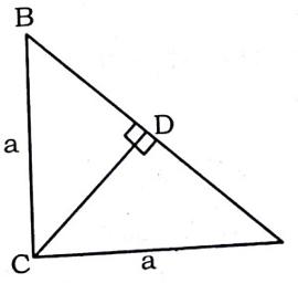 ?ABC is a right angle triangle. In which ∠C=90° And D is a point on AB such that D is perpendicular on AB. Let AC = BC = a ∴AB^2=AC^2+BC^2=a^2+a^2 AB=a^2 ∴BD=AD=a√2/2=a/√2 Now In ?ACD =AC^2=CD^2+AD^2 a^2=CD^2+a^2/2 a^2−a^2/2=CD^2 a^2/2=CD^2 CD^2=a^2/2 2CD^2=a^2 and AD^2+BD^2=(a/√2)^2+(a/√2)^2 =a/√2+a/√2=a^2 ∴2CD^2=AD^2+BD^2