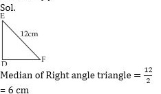 In a right angled triangle ?DEF, if the length of the hypotenuse EF is 12 cm, then the length of the median DX is