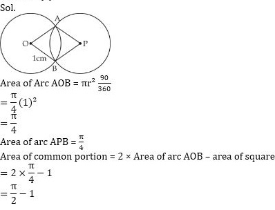 Two equal circles intersect so that their centres, and the points at which they intersect form a square of side 1 cm. The area (in sq.cm) of the portion that is common to the circles is