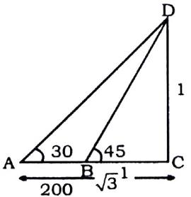 AB=AC−BC =√3−1 (√3−1) units=200cm (1.732−1) units=200cm .732 units=200cm So,CD=1 unit=273cm