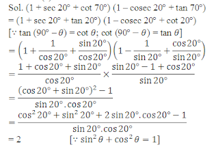 (1 + sec 20° + cot 70°)(1 - cosec 20° + tan70°) is equal to