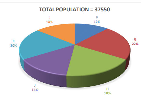 Pie chart given below shows population of 6 village. Study the chart carefully & answer the following question.