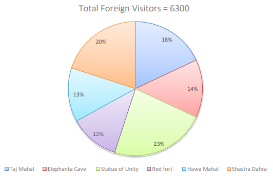 Multiple Choice Questions on Find the difference between total foreign visitors who visited Hawa Mahal and Red Fort together to t........... for SSC CGL Exam Preparation