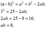 If a - b = 3 and a2 + b2 = 25, then the value of ab is