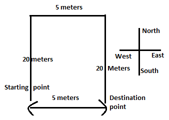 hence, the correct distance between the starting and destination point will be 5 meters.