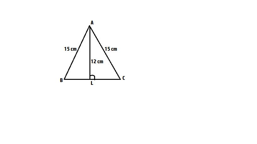 Since, BL=CL; Hence, using Pythagoras theorem; 152=122 + BL2; BL=9 cm. Hence, the length of base= 9*2= 18 cm