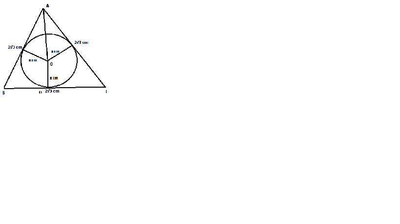 Radius of the incircle of an equilateral ΔABC of sides 2√3 units is x cm. The value of x is
