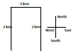 Ramesh starts his journey by walking 2 kilometres towards North. Then he takes a right turn and walks 1 kilometre. Again takes a right turn and walks 2 kilometre. Now which direction is he facing?