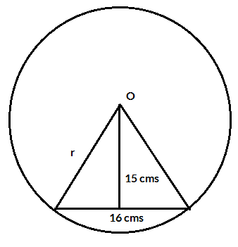 r2 = 152 + 82; r2 = 225 + 64 = 289; => r = 17 cms