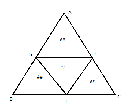 If DE|| BC, and D and E bisects the sides AB and AC. (DE = ½ BC). Hence, in the given figure, area of ABC, DEF, BDF and FEC will be equal. Therefore, The Area of ABC = 4*15 = 60 sq. cm.