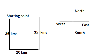 Rita travelled 35 Km from a point towards South and then turned left and travelled 20 Km and finally turned left again and travelled 35 Km. In which direction is she from the starting point?
