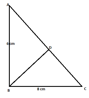 In ABC ang B is right angle D is the midpoint of the side AC If AB 6 cm BC 8cm then the length of BD...........