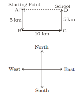 To attend an exam, Sudhir reached the school by travelling 5 km towards South, and after a sharp left turn, he travelled for about 10 km. He again made a sharp left turn and reached in front of the school by travelling 5 km more. Which direction is Sudhir's starting point from the school?