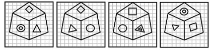 Which symbol will appear on the face opposite to the face of a circle O in the cube given below?