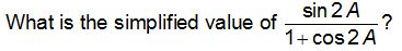 = (2sinAcosA)/(1+2cos^(2)A-1) =(2sinAcosA)/ cos^(2)A = 2sinA/cosA =2tanA