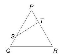 QRTS is a cyclic quadrilateral. In triangle PTS, PT = 5 cm, PS = 6 cm, PS/sin 63 = PT/sin PST = TS/sin P, or 6/sin 63 = 5/sin PST, or sin PST = 5 sin 63/6 = 0.742505436 or PS/sin 63 = TS/sin P, or TS = PS*sin P/sin 63 = 6* sin 69.05472005/sin 63 = 6.288992726 cm In triangle PQR, PQ/sin QRT = RP/sin PQR, or 10/sin 47.94527995 = RP/sin 63, or RP = 10*sin 63/sin 47.94527995 = 12. Therefore TR = RP - TP = 12 - 5 = 7 cm