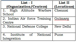 1.high school warfare school established by Indian Army in 1948 specialized and snow craft and winter warfare 2.indian air force training Centre for all streams 3. National Defence college established in 1960. 4. Institute of National Integration established in 1985.
