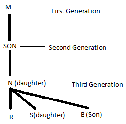 The son of M is the father of N and grandfather (Mother’s father) of R. S is the daughter of N and sister of B. on the basis of this information, how is M related to B?