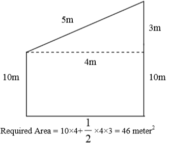 Two straight poles of unequal length stand upright on a ground. The length of the shorter pole is 10 meters. A pole joins the top of the two vertical poles. The distance between the two tops is 5 meters. The distance between the poles along the ground is 4 meter. The area thus formed by the three poles with the ground is