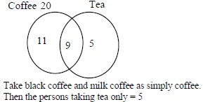 In a staff room of 25 teachers, 13 drink black coffee, 7 milk coffee, 9 drink both tea and either type of coffee, and everyone drinks either of the beverages. How many teachers drink only tea?
