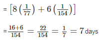 Two men and seven boys can do a work in 14 days. Three men and eight boys can do the same work in 11 days. Further eight men and six boys can do three times the amount of this work in: