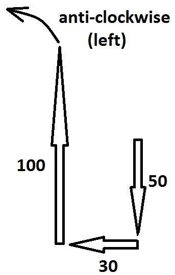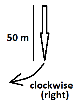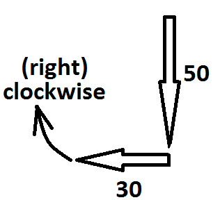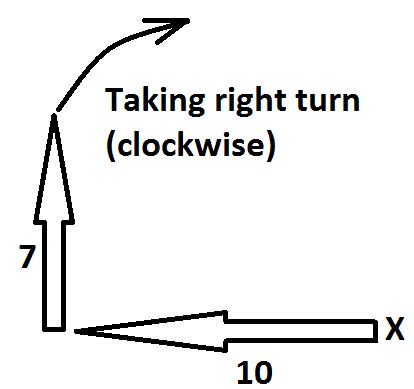 Some people have doubt in deciding left or right in direction questions; they can replace right by clockwise and left by anticlockwise. So now moving right (clockwise) from the tip of the arrow.