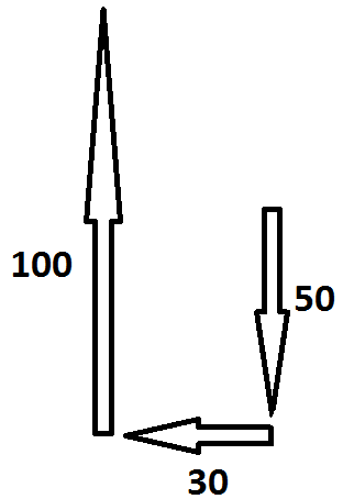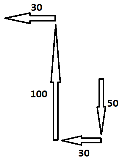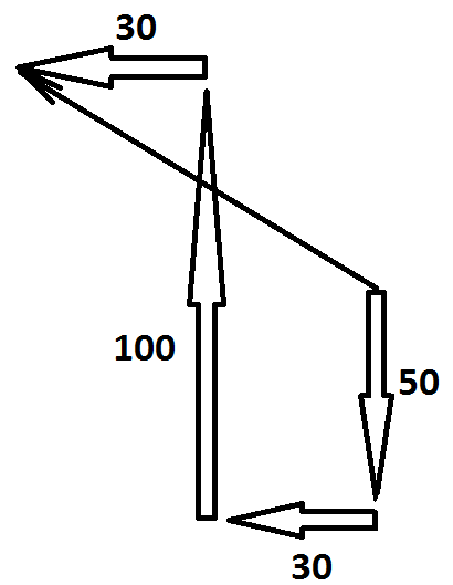 Direction: Ashok started walking towards South. After walking 50 meters he took a right turn and walked 30 meters. He then took a right turn and walked 100 meters. He then took a left turn and walked 30 meters and stopped. How far and in which direction was he from the starting point?