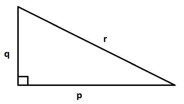 Suppose we have a triangle having base p, height q and hypotenuse r. Then according to this theorem: