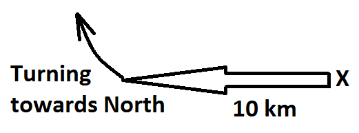 Jay starts his van from point X and covers a distance of 10 km towards west