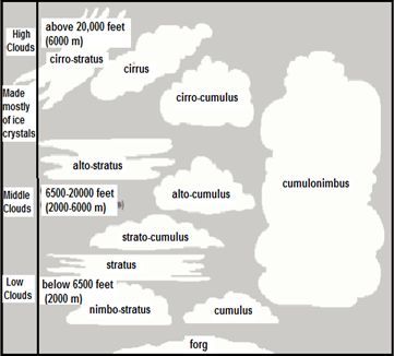 Clouds are classified on the basis of appearance, form and altitude. On the basis of form, there are two major groups: (i) stratiform, or layered types, and (ii) cumuliform or massive, globular types.