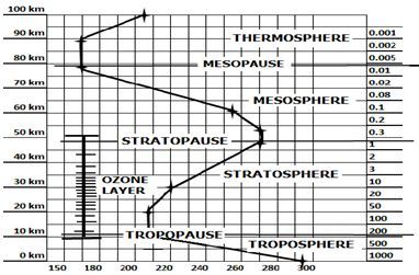 From the earth’s surface upward to an altitude of about 80 km the chemical composition of atmosphere is uniform in terms of the proportions of its component gases. The atmosphere can be divided into layers on the basis of temperatures and zones of temperature change. Above 80 km. atmospheric composition tends to be independent of height.