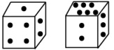Two positions of a dice are shown below. When there are five dots at the top, how many dots will be at the bottom?