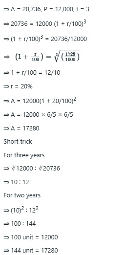 Asum of Rs12,000 amounts to Rs20,736 in 3 yearsat a certain rate percent per annum, interest compounded annually. What will amount of the same sumto in 2 years at the same rate on compound interest?