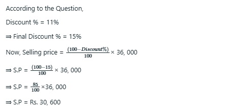 The marked price of a mobile phone is Rs36,000.A shopkeeper gives a discount of 11% on the marked price. Further, if a customer purchases it through credit card the discount increases by 15%. Pooja purchases it through the credit card. How much does she pay?