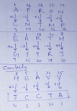 In a certain code language, ‘APRON’ is written as ‘CNTMP’ and ‘EARTH’is written as ‘GYTRJ’. How will ‘HEAVY’ be written in that language?