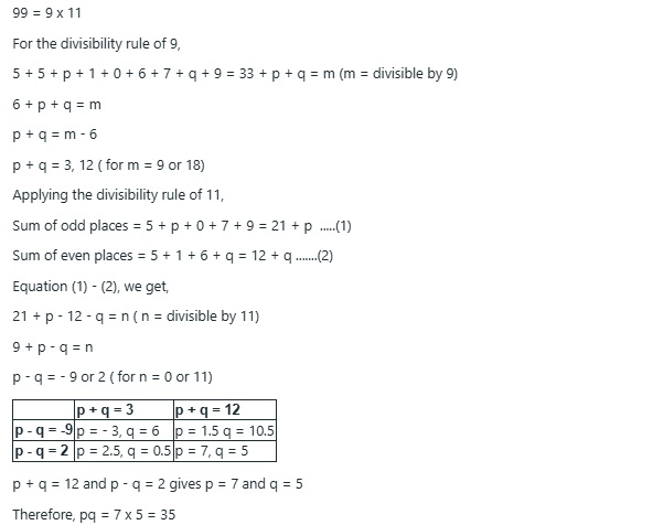 If the number 55pl067q9 is exactly divisible by 99 then pq is equal to: