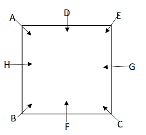 A, B, C, D, E, F, G and H are sitting around a square table facing the centre of the table.