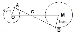 The ratio in which a transverse common tangent drawn to two circles with radii 4 cm and 6 cm respect...........