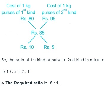 Find the ratio in which pulses at Rs80 per kg can be mixed with pulses at Rs95 per kg to get a mixture worth Rs85 per kg.