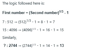 7 : 512 :: ? : 2744 :: 15 : 4096