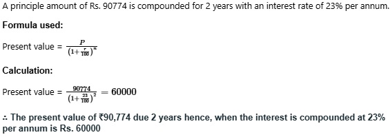 What will be the present value of Rs 90,774 due 2 years hence, when the interest is compounded at 23% per annum?