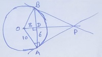 Chord AB of circle of radius 10 cm is at a distance 8 cm from the centre O. If tangents drawn at A and B intersect at P, then the length of the tangent AP (in cm) is: