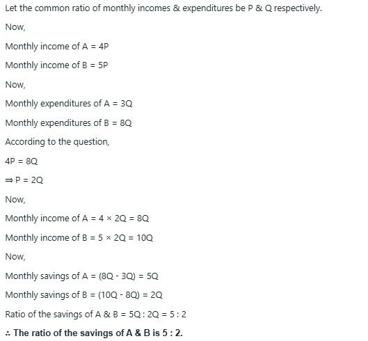 The ratio of monthly incomes of A and B is 4 : 5 and that of their monthly expenditures is 3 : 8. If the income of A is equal to the