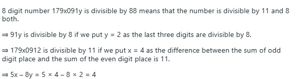 Multiple Choice Questions on If the 8 digit number 179 x 091y is divisible by 88 the value of 5x mdash 8y is ........ for SSC CGL Exam Preparation