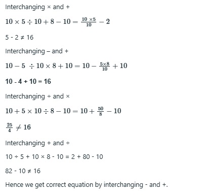 10 + 5 ÷ 10 × 8 − 10 = 16